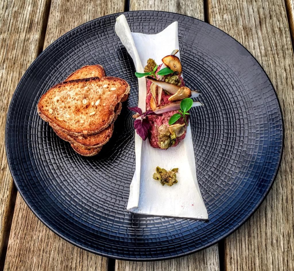 3. Hovězí kostky na kořenové zelenině a červeném víně, bylinková tarhoňa185 Kč