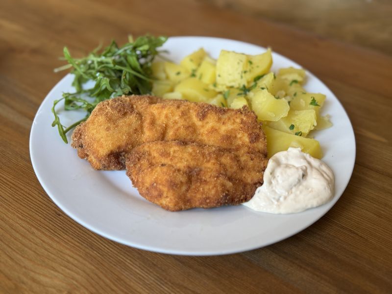 2. Přírodní vepřový plátek, vařený brambor, tatarka159 Kč