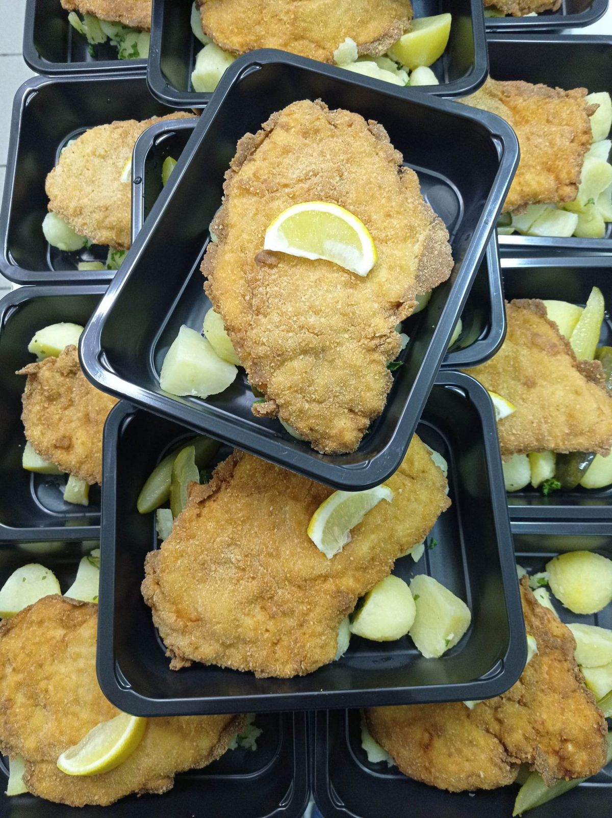 1. Smažené rybí filé, bramborový salát129 Kč