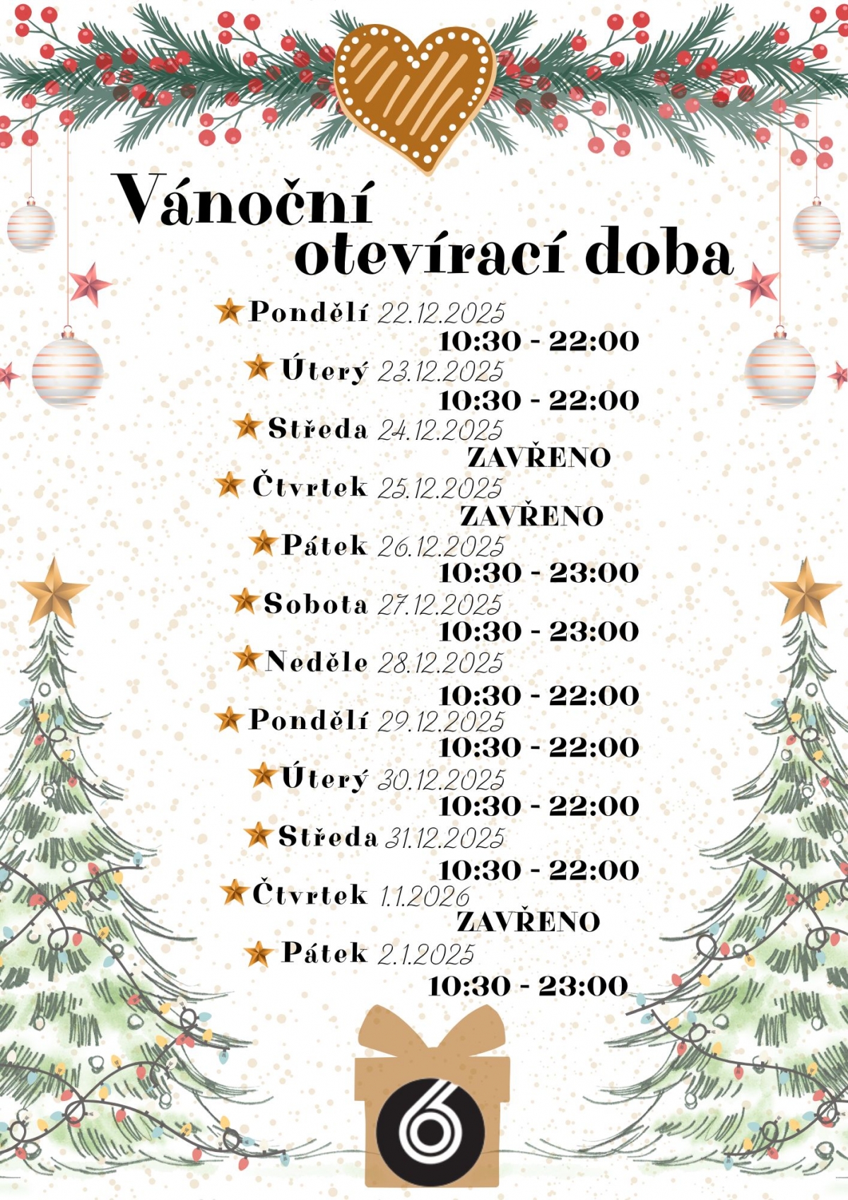 - Pátek: 10:30–23:00