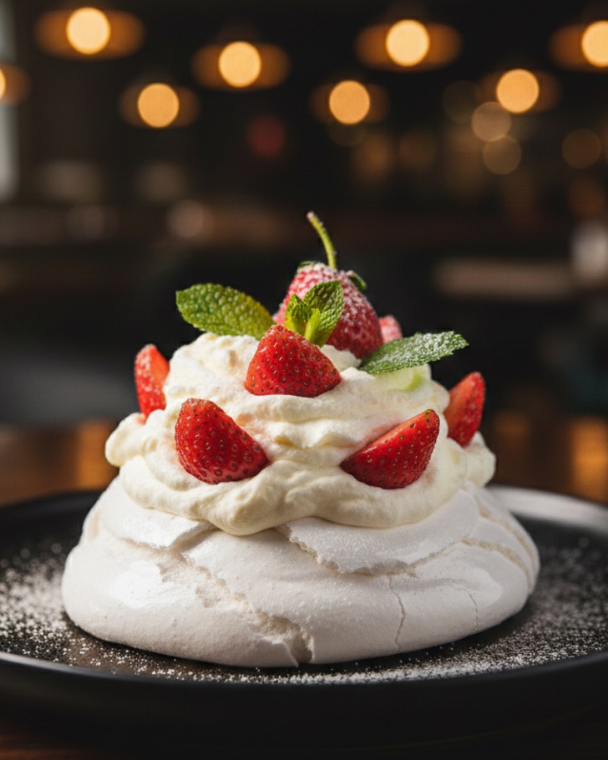 Sladká tečka: Naše vyhlášená Mini Pavlova se šlehačkou a čerstvými jahodami 🍓