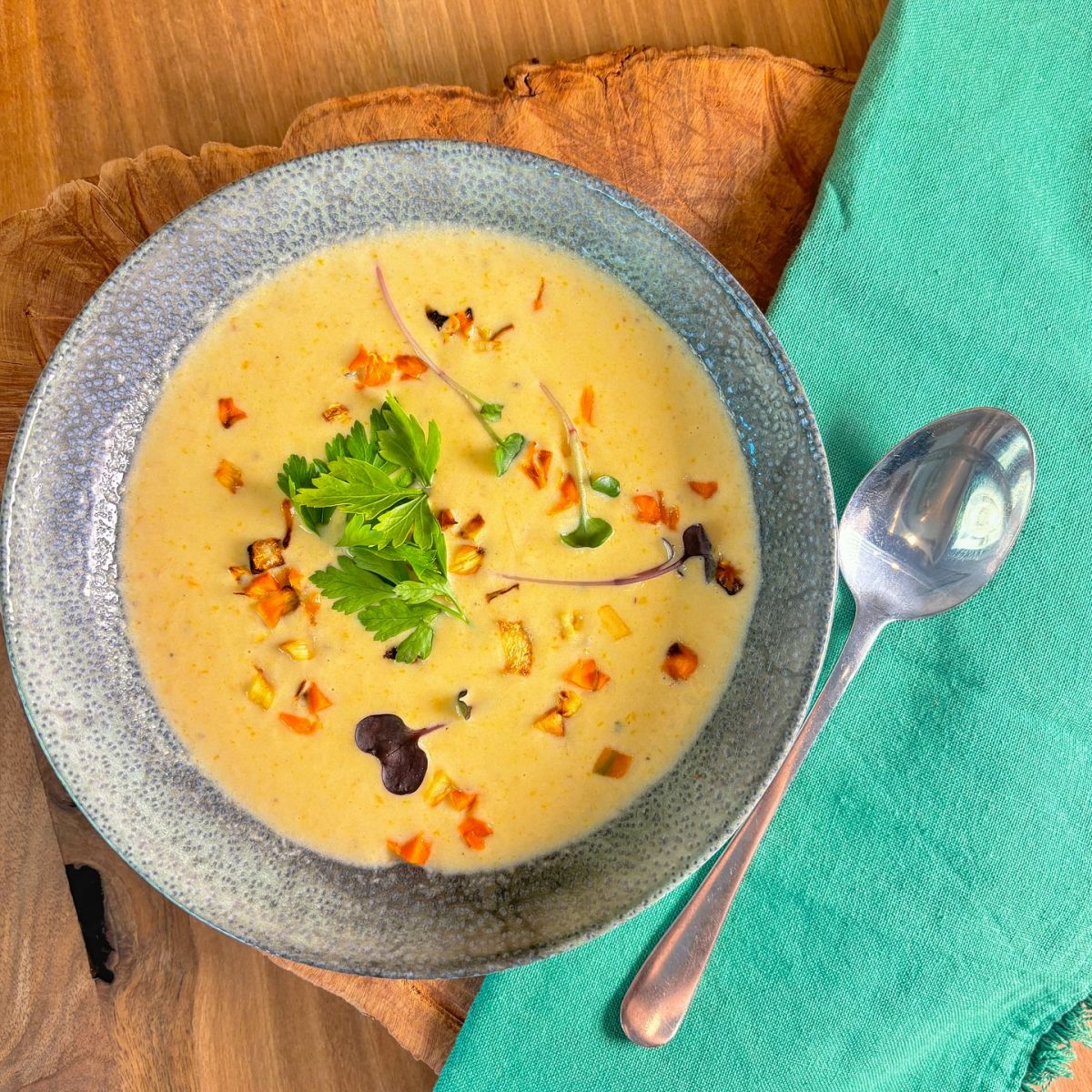 Crema di Funghi Champignon | jemný žampionový krém s restovanými houbami, čerstvými bylinkami a Focacciou79 Kč
