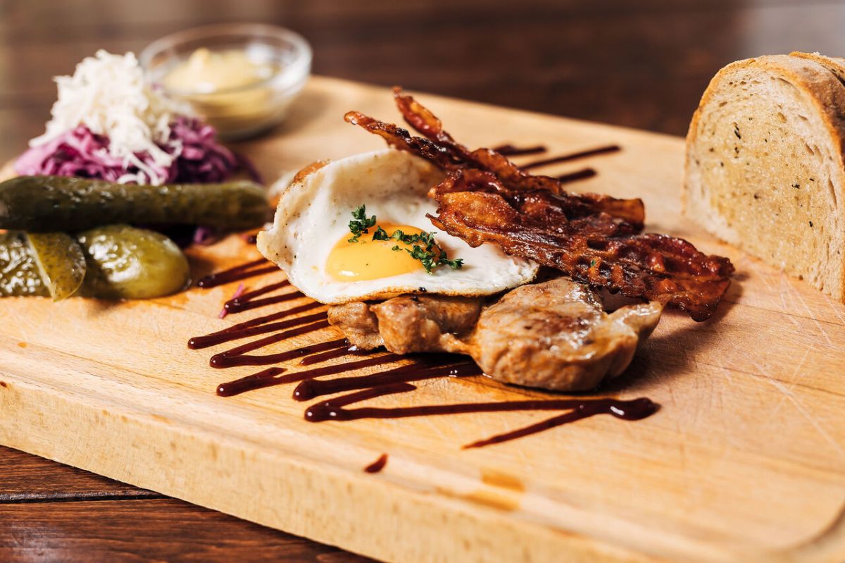 13. Menu 13: 209 200g Pikantní dřevorubecká krkovička, podávaná se sázeným vejcem, krokety