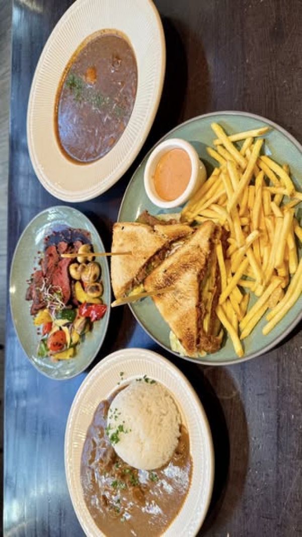 3. Stroganoff z hovězí svíčkové, jasmínová rýže/hranolky289 Kč