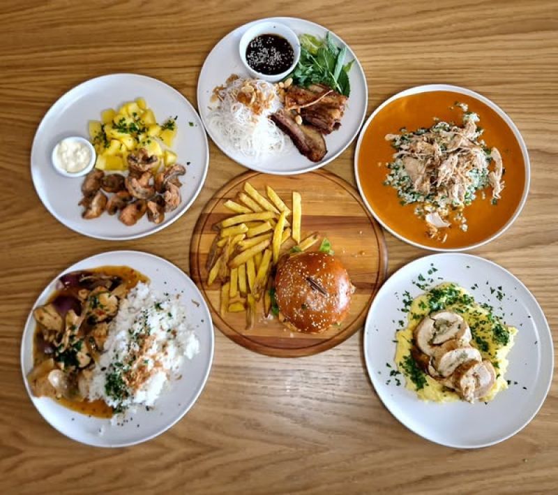 5. VEGE malý Cheeseburger + hranolky – 60g trhané veggie maso (jackfruit), Irish red cheddar, červená cibulka, sterilovaný okurek, hořčice a kečup, hranolky199 Kč