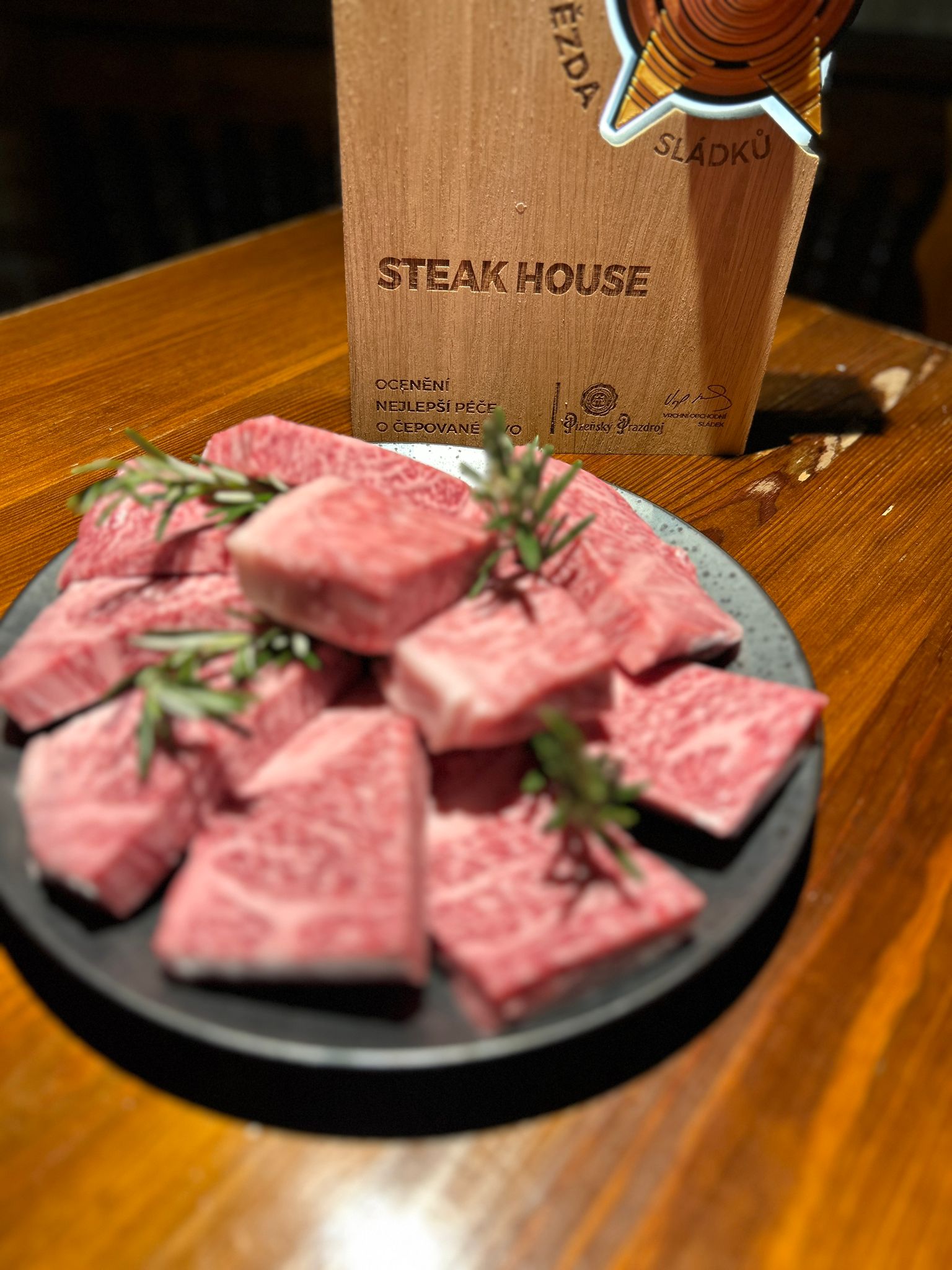 - 130 g Hovězí tatarák křepelčí vejce, česnek, topinky 6285 Kč