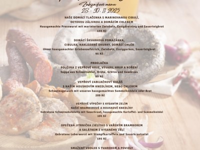 Menu: Pečené husí stehno, bílé a červené zelí, HK+BK +polévka590 Kč