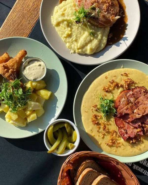 • 2. 150g Kuřecí steak, loštická omáčka, pečené grenaille 1a, 3, 7, 9