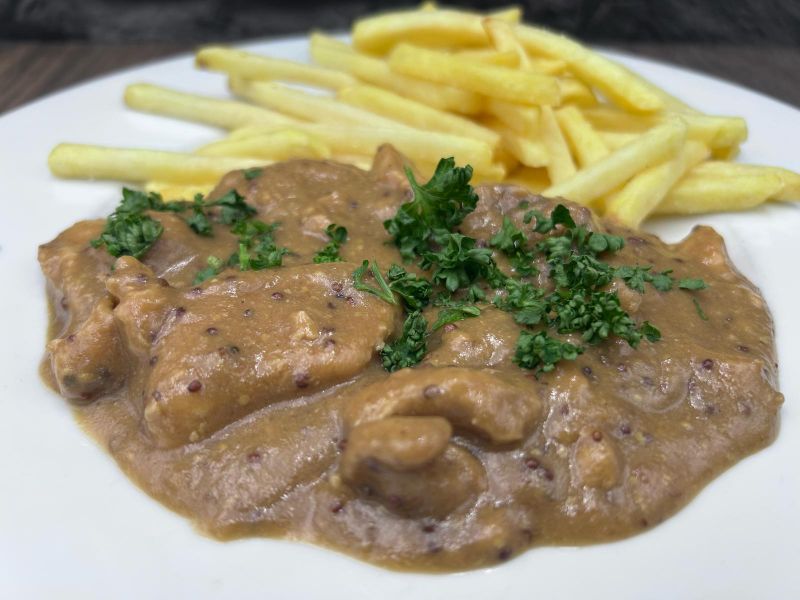 1. 150gVepřová panenka s paprikovou omáčkou, tagliatelle135 Kč
