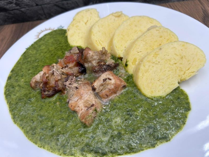 1. 150g Křenová omáčka s hovězím masem a knedlíkem135 Kč