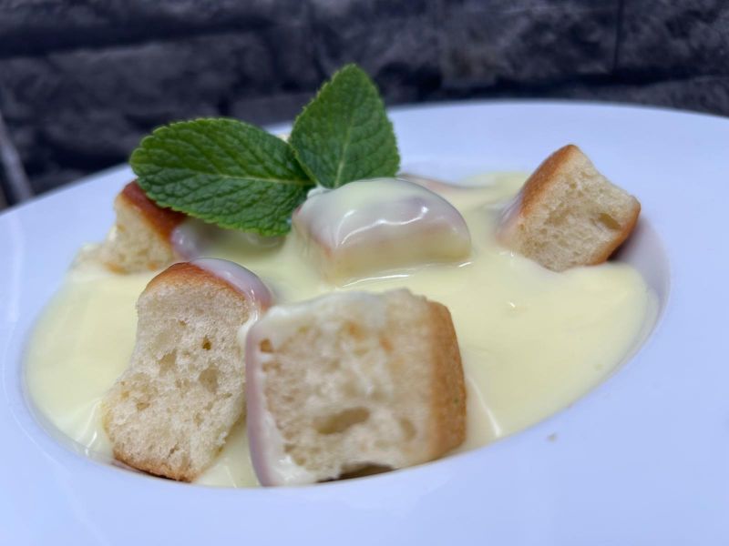 • 3. 300g Zapečený jaternicový, jelítkový prejt s kysaným zelí a bramborovou kaší