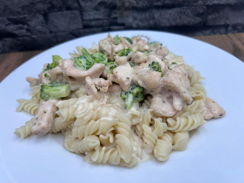 6. 250g Těstovinový salát s kuřecím masem a čerstvou zeleninou135 Kč