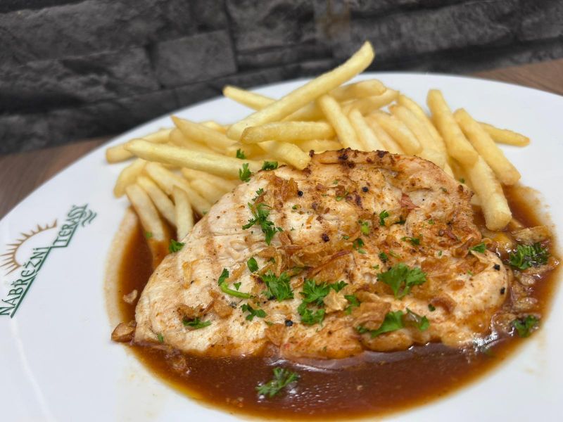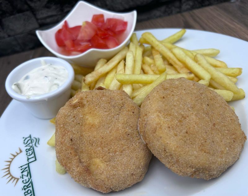 1. 150 g Máslový mletý řízek s vařeným bramborem135 Kč