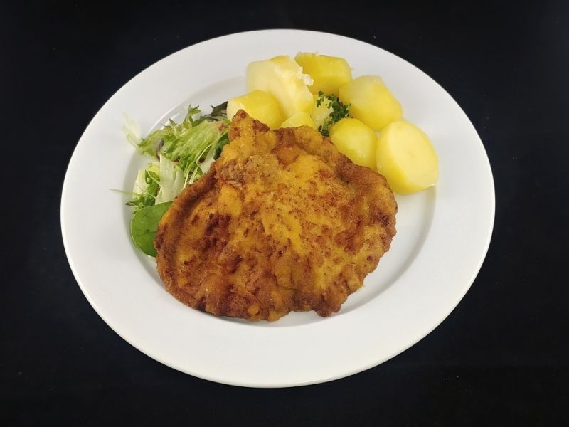 5. 120 g Smažený vepřový řízek, vařené brambory145 Kč