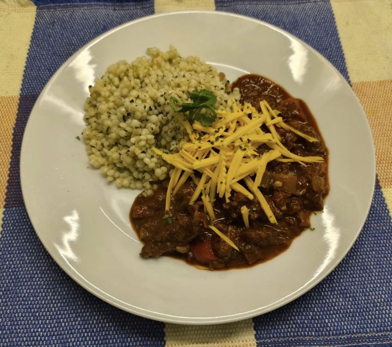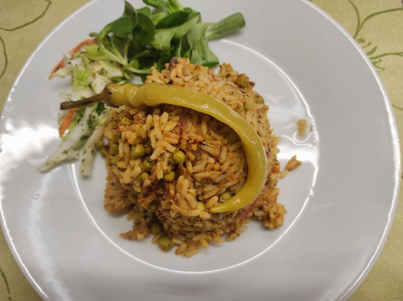 1. Jalapeno seitan po mexicku s orzo těstovinami (V) (P) (1) (Seitanové kousky v omáčce z jalapeno papriček, rajčat a citronu, podávané s orzo)150 Kč