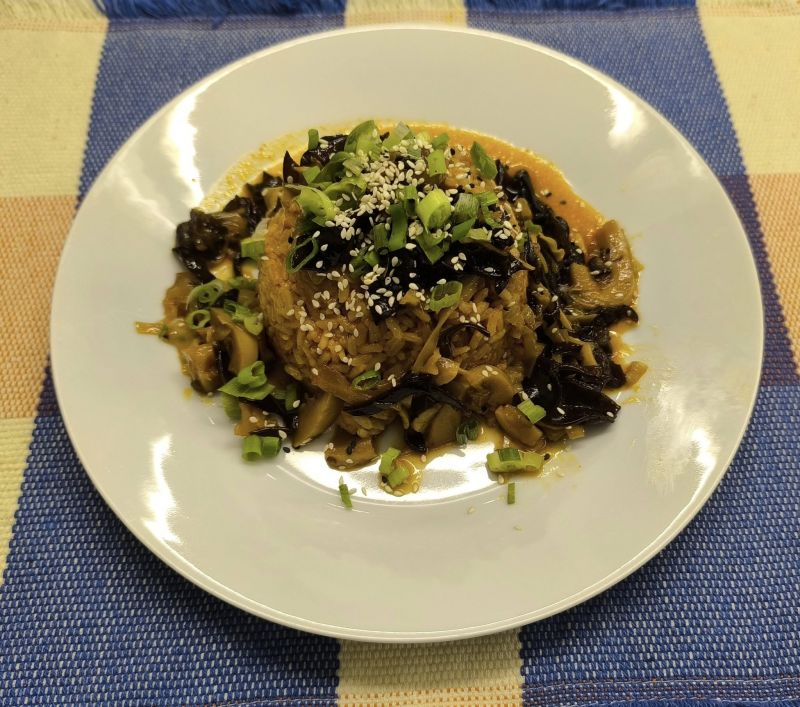 2. Thajská kokosová rýže s jidášovým uchem a bambusem (B) (V) (Rýže dušená na kokosovém mléce s jidášovým uchem, bambusovými výhonky a cibulkou)150 Kč