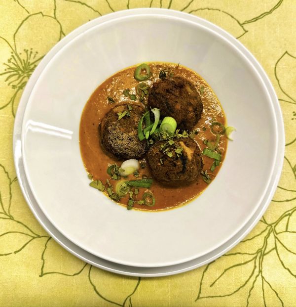 1. Indické bramborové knedlíčky malai kofta (V) (1, 6) (Bramborové knedlíčky s tofu a špenátem v husté rajčatovo-cibulové curry omáčce)150 Kč