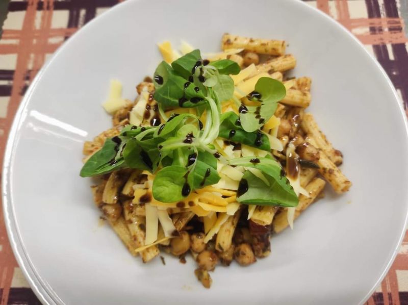 3. Pasta e ceci (V) (1, 6) (Italské těstoviny s cizrnou podušenou na bílém víně s rajčaty a tofu škvarečky)150 Kč