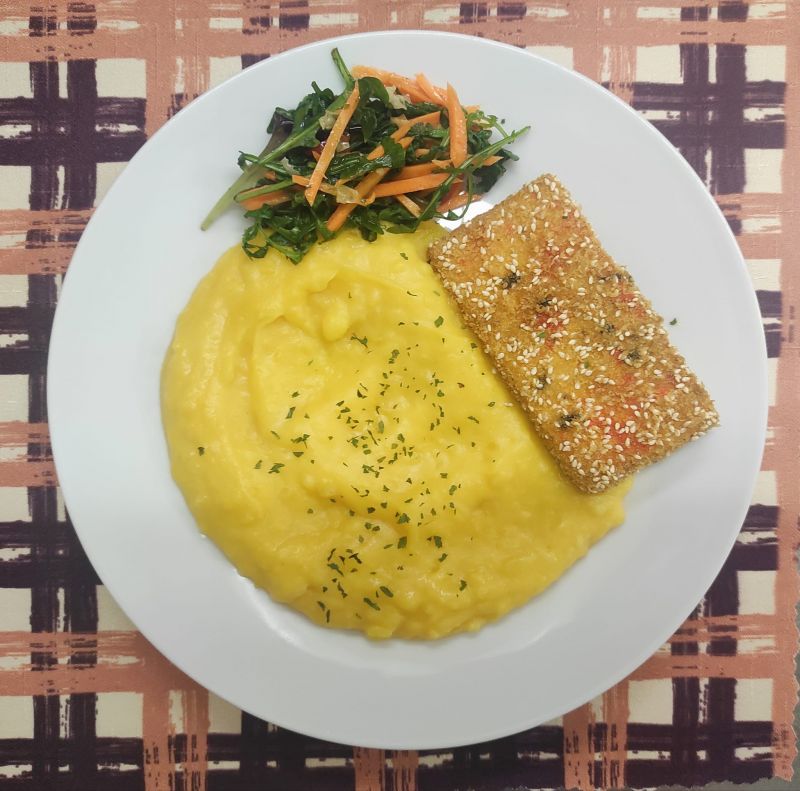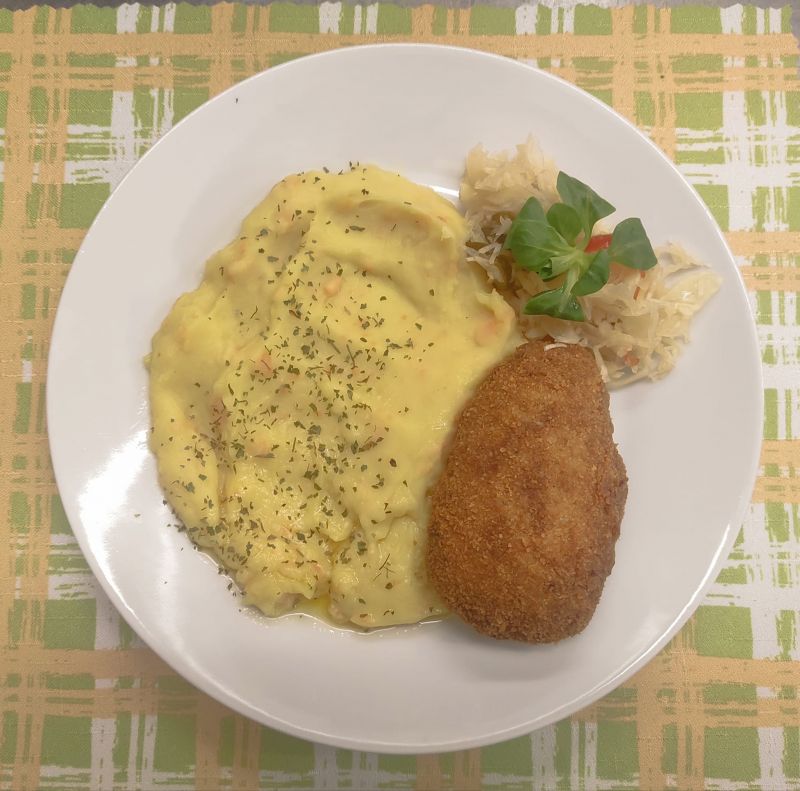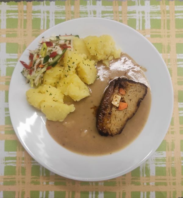 1. Seitan vallée d’auge s těstovinami (V) (1, 6) (Seitan na divokém koření ve vegan smetanové omáčce s žampiony, podávané s těstovinami)150 Kč