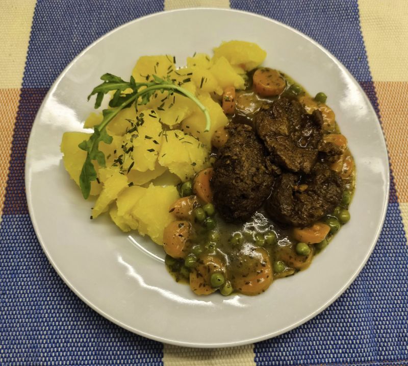 3. Japonské ragú nikujaga (B) (V) (6) (Sójové kousky dušené na miso pastě s brambory, hráškem a rýžovými nudlemi)150 Kč