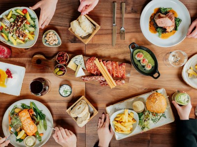4. Medailonky z vepřové panenky na zeleném hráškovém pyré, domácí kořeněné americké brambory /7/169 Kč