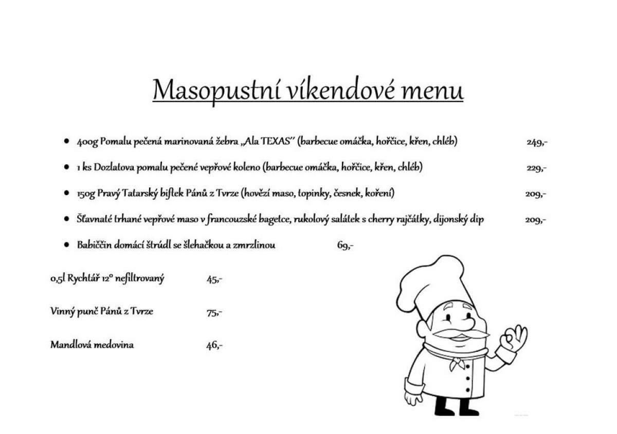Tradičně Vás zveme na Masopustní víkendové menu!