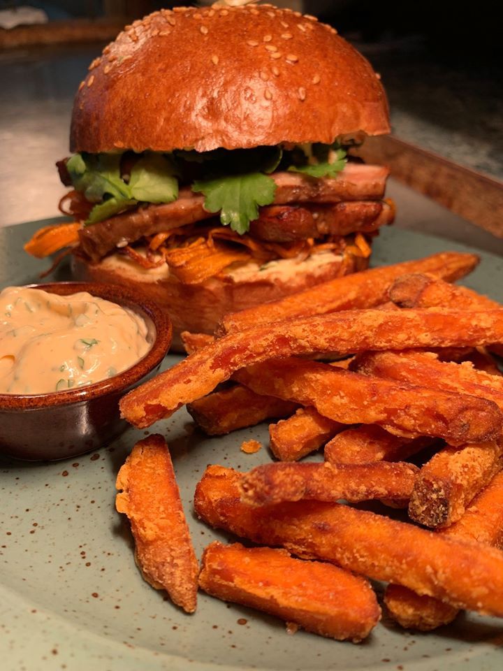 - Hovězí Cheese burger v domácí máslové briošce pečený dorůžova, hranolky (A1a, A3, A7, A11, A12) (slaninová marmeláda, sýr cheddar, salát, rajče, majonéza s kečupem, bbq omáčka)269 Kč