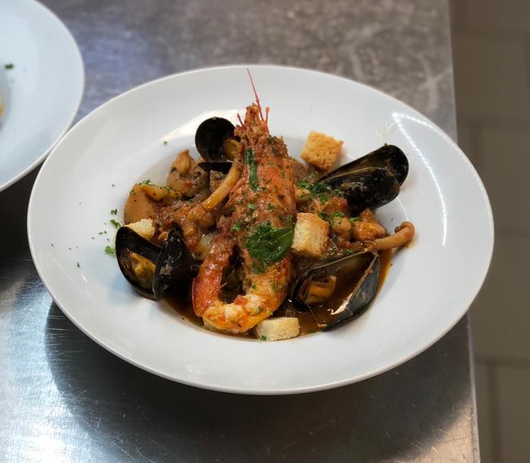 - Spaghetti al nero di seppia con polipo, gamberi e calamari (sépiové spaghetti s chobotnicí, krevety, kalamáry a cherry rajčaty)319 Kč