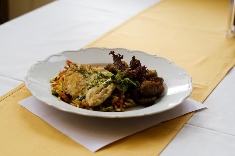 • 3. 150g Drahanský ježek- jemně pikantní vepřové nudličky s restovanou zeleninkou v bramboráku se strouhaným sýrem a česnekovou tatarkou, zeleninový salát A-1, 3, 7, 9, 10