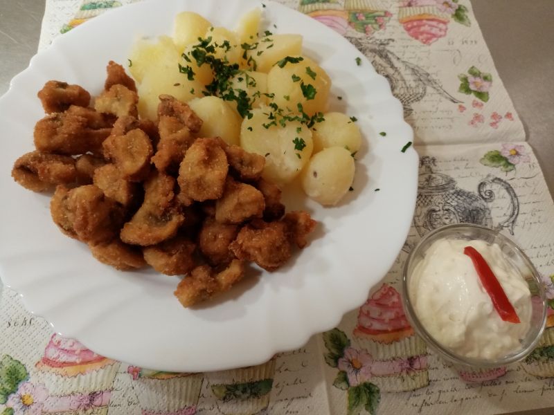 150g smažené žampiony + příloha dle výběru 137150 Kč