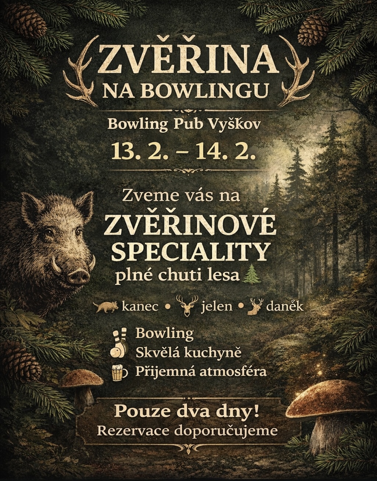 Přijď si vychutnat poctivou zvěřinu plnou chutí, vůně lesa a zimní atmosféry.