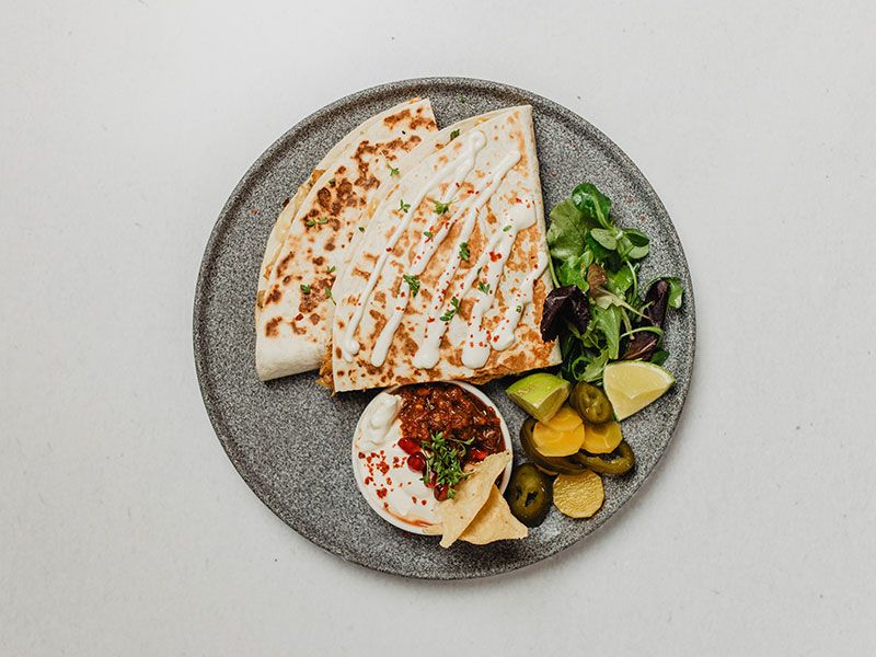 1. Sinaloa Chilorio y Salsa de Piňa - pšeničné placky s česnekem, plněné trhaným vepřovým masem a ananasovou salsou 1180 Kč