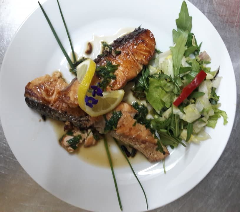 1. Kuřecí steak se smetanovou omáčkou, hranolky130 Kč