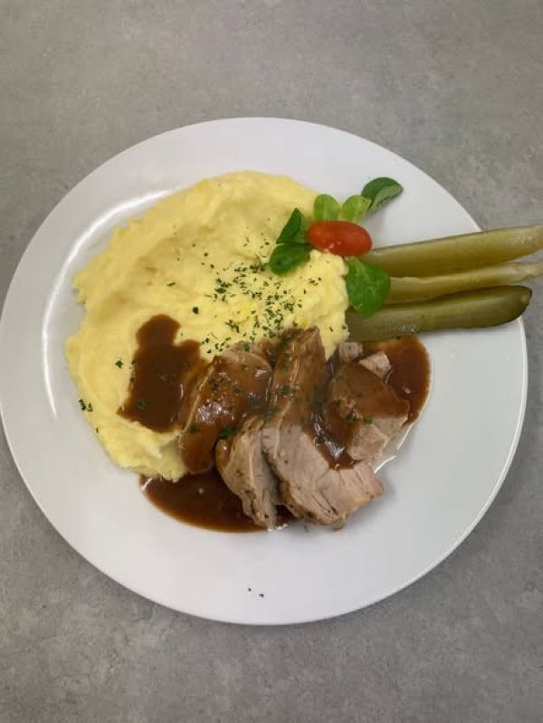 1. Pečené kuřecí stehno, bramborová kaše 17170 Kč