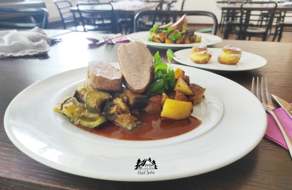 2. Vepřová panenka plněná pikantní fáší, demi-glace, ameriky164 Kč