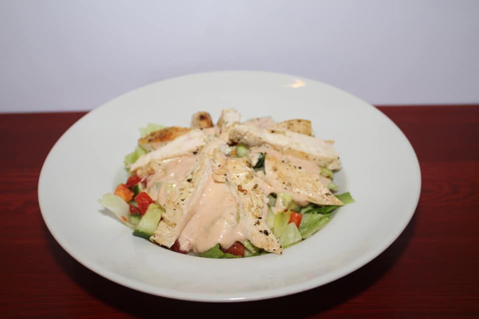 6. 300g Zeleninový salát s kuřecími řízečky, dip145 Kč