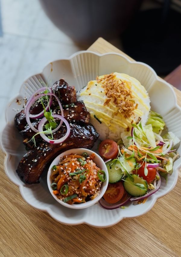 1. TÝDENNÍ NABÍDKA: SAMBAL PORK RIBS - vepřová žebra v sambal omáčce, jasmínová rýže s japonskou majonézou, splátek s kimchi 134219 Kč