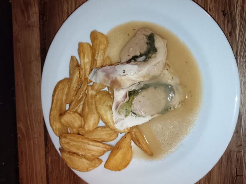 1. Přírodní kuřecí kapsa plněné slaninou a špenátem, šťouchané brambory124 Kč