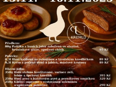 Nabídka v restauraci se může lišit. Menicka.cz negarantují dostupnost jídel či cen zde uvedených. Děkujeme za pochopení.
