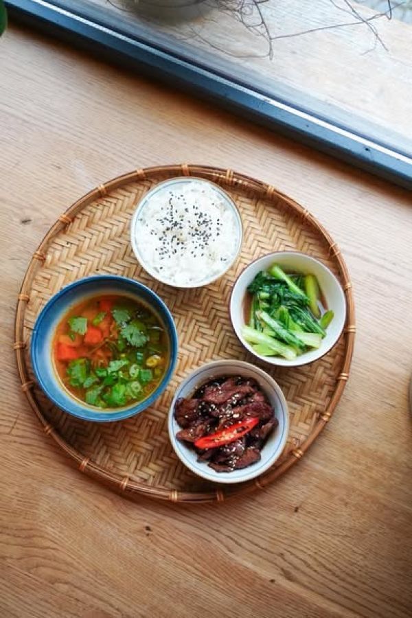 1. Vietnamské menu - restované kachní kousky, smažená vietnamská zelenina, hovězí polévka s bramborami a mrkví, jasmínová rýže185 Kč