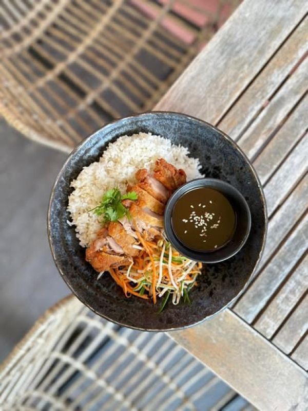 2. Gá Rán - smažené kuřecí kousky s omáčkou ze sójové a hoisin omáčky, limetových listu a chilli, salát z čerstvé zeleniny, jasmínová rýže175 Kč