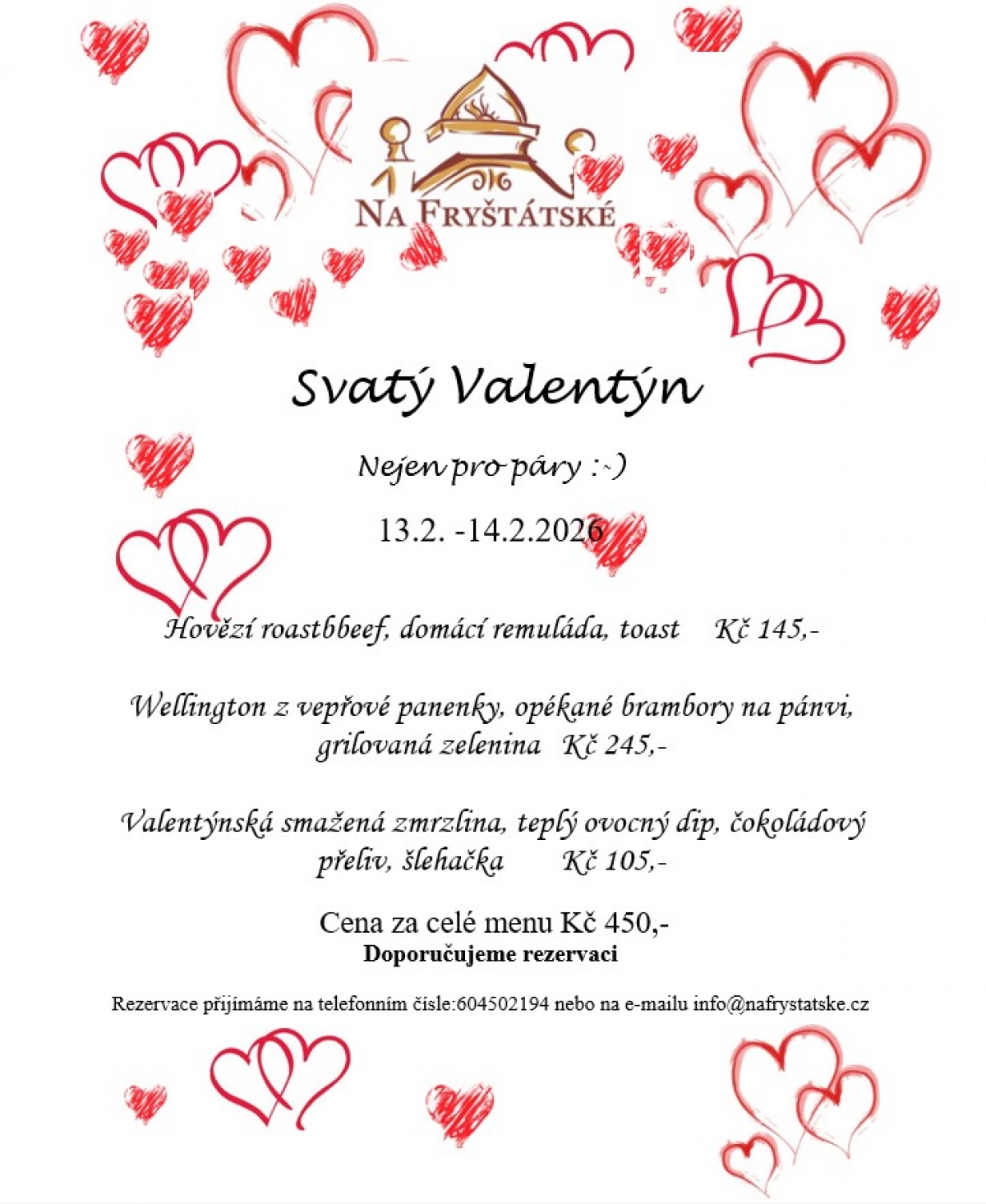 Rezervace přijímáme na telefonním čísle:604502194 nebo na e-mailu info@nafrystatske.cz