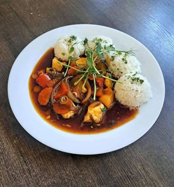 4. Chalupářské nudličky z vepřového masa, jasmínová rýže nebo čerstvý chléb žampiony, paprika, cibule, protlak165 Kč