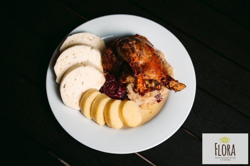 23. 1 ks 1/4 Pečená kachna s nádivkou, bílé a červené zelí, mix knedlík 137249 Kč