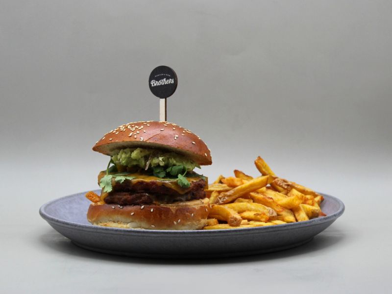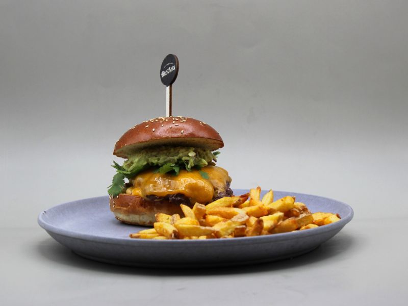 7. Mexican Heat Burger Velký & Hranolky - Hovězí maso, chipotle majonéza, cheddar, guacamole s koriandrem, challapenos (1/ 3/ 7/ 10/ 11)259 Kč