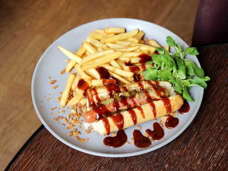 7. Sweet chilli SMASH burger DOUBLE - hovězí maso, sweet chilli mayo, cheddar, jalapeño, nachos, hranolky249 Kč