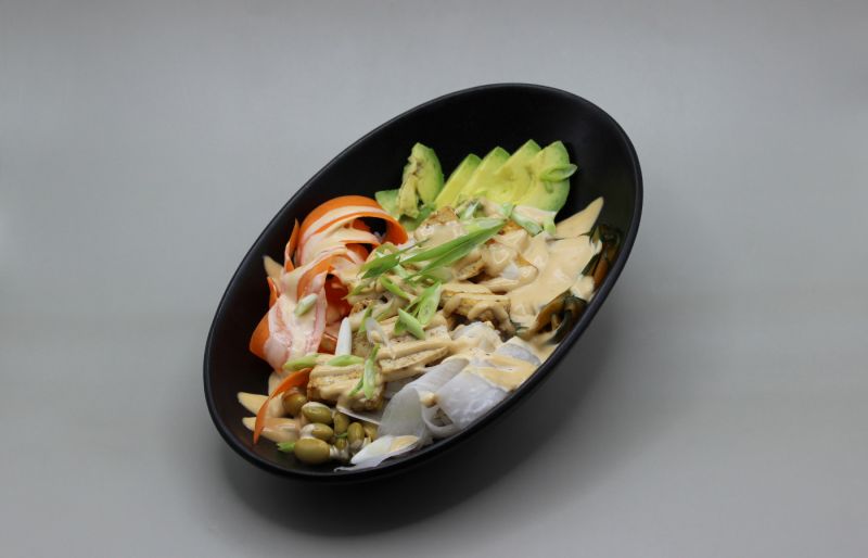 4. Tofu poke bowl - Avokádo, okurek, ředkvička, mrkev, edammame, jarní cibulka, rýže, sojová omáčka (4/ 6/ 11)169 Kč