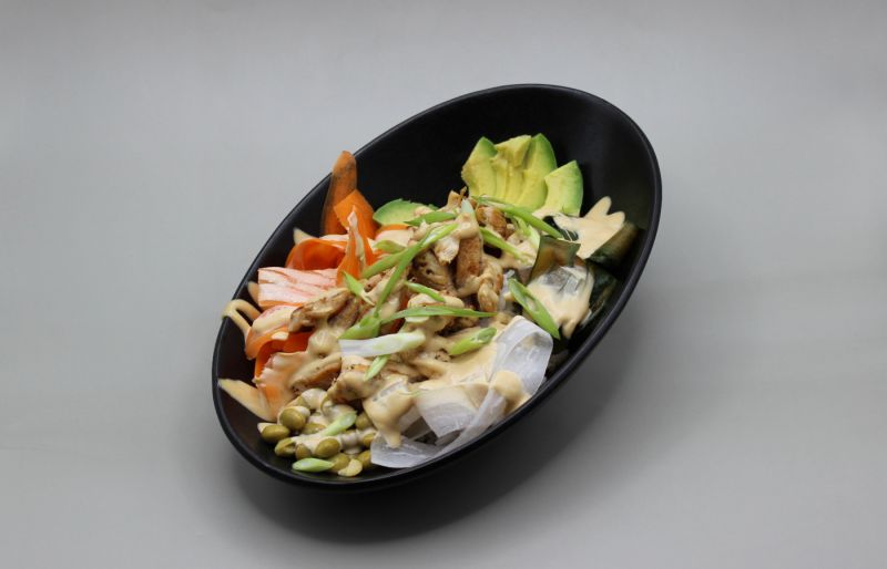 3. Kuřecí poke bowl - Avokádo, okurek, ředkvička, mrkev, edammame, jarní cibulka, rýže, sojová omáčka (4/ 6/ 11)169 Kč