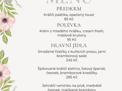 1. Vepřové řízečky s Dijonskou hořčicí, bramborová kaše, rajčatový salátek s jarní cibulkou195 Kč