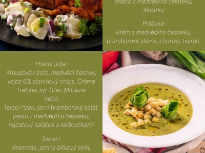 4. Husí stehno, červené zelí, žemlový a bramborový knedlík, smažená cibule, škvarky385 Kč